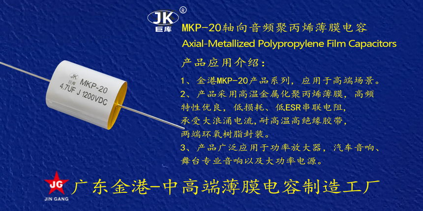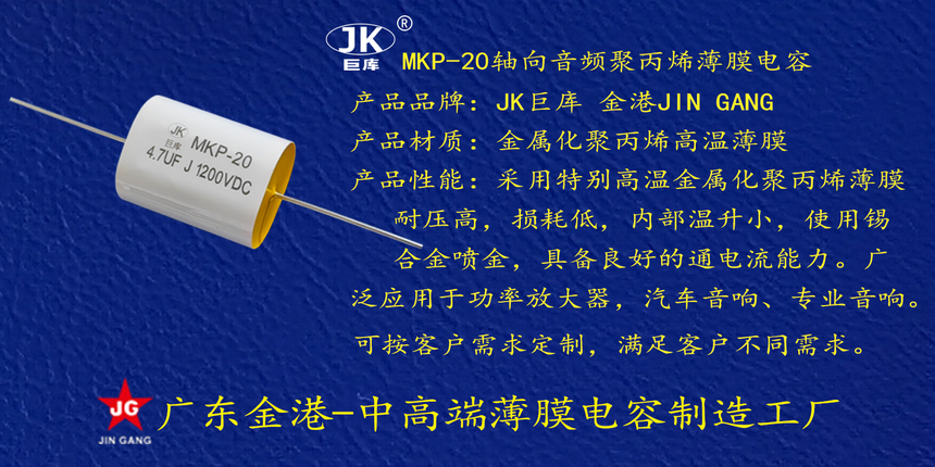 産品(pin)品牌 :JK巨庫金(jin)港JINGANG 産品材質(zhì): 金屬化聚丙(bing)烯高溫薄膜(mó) 産品性能: 采(cǎi)用高溫金屬(shu)化聚丙烯薄(bao)膜 耐壓高,損(sǔn)耗低,内部溫(wēn)升小,使用錫(xi)合金噴金, 具(ju)備良好的通(tong)電流能力。 産(chǎn)品作用: 廣泛(fàn)應用于功率(lǜ)放大器,汽車(che)音響、專業音(yin)響。 定制加工(gōng) :可按客戶需(xū)求定制,滿足(zu)客戶不同需(xu)求。
