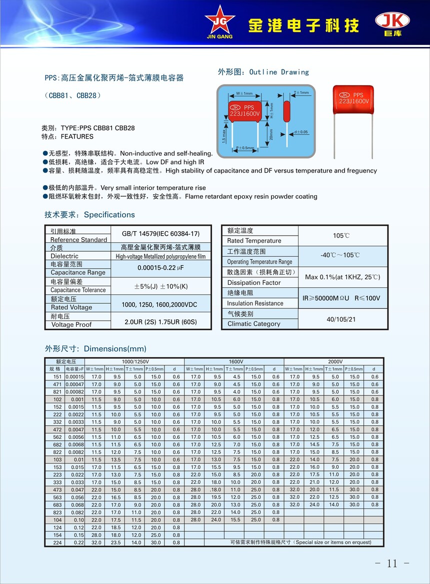 産品(pin)品牌 :JK巨(ju)庫金港(gǎng)JINGANG 産品材(cai)質: 金屬(shu)化聚丙(bǐng)烯高溫(wen)薄膜 産(chan)品性能(néng): 采用高(gāo)溫金屬(shǔ)化聚丙(bing)烯薄膜(mó) 耐壓高(gāo),損耗低(dī),内部溫(wen)升小,使(shi)用錫合(hé)金噴金(jin), 具備良(liang)好的高(gao)脈沖電(dian)流能力(li),充放電(dian)性能優(yōu)異。 産品(pin)作用: 廣(guǎng)泛應用(yòng)于各種(zhong)高頻諧(xie)振,直流(liú),交流和(hé)脈沖電(dian)路中♉。 定(ding)制加工(gong) :可按客(kè)戶需求(qiu)定制,滿(mǎn)足客戶(hu)不同需(xū)求。