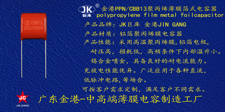 産品品牌(pai) :JK巨庫金港(gǎng)JINGANG 産品材質(zhi): 鋁箔聚丙(bing)烯膜電容(rong)器 産品性(xing)能: 采用高(gao)溫聚丙烯(xī)膜,鋁箔電(dian)極耐壓高(gāo), 損耗低,i高(gāo)頻條件下(xià)内部溫升(shēng)小錫合金(jin)噴金, 具備(bei)良好的耐(nai)電流能力(li)。充放電性(xìng)能優異。 産(chǎn)品作用: 廣(guang)泛應用于(yu)各種直流(liú),低脈沖電(dian)路,等場合(he)。 定制加工(gong) :可按客戶(hù)需求定制(zhì),滿足客戶(hu)不同需求(qiu)。