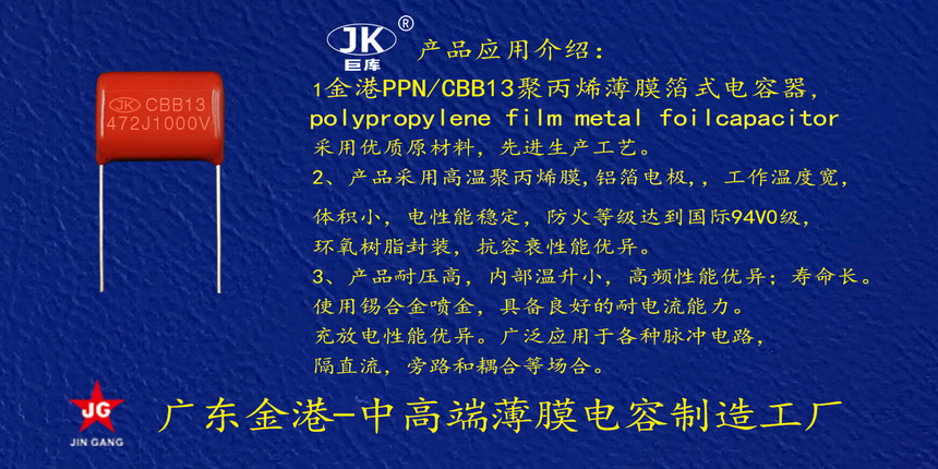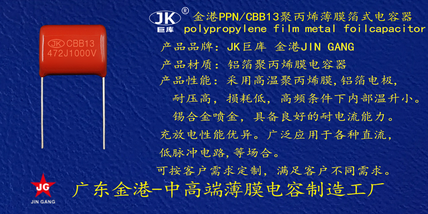 産品品牌(pai) :JK巨庫金港(gǎng)JINGANG 産品材質(zhi): 鋁箔聚丙(bing)烯膜電容(rong)器 産品性(xing)能: 采用高(gao)溫聚丙烯(xī)膜,鋁箔電(dian)極耐壓高(gāo), 損耗低,i高(gāo)頻條件下(xià)内部溫升(shēng)小錫合金(jin)噴金, 具備(bei)良好的耐(nai)電流能力(li)。充放電性(xìng)能優異。 産(chǎn)品作用: 廣(guang)泛應用于(yu)各種直流(liú),低脈沖電(dian)路,等場合(he)。 定制加工(gong) :可按客戶(hù)需求定制(zhì),滿足客戶(hu)不同需求(qiu)。